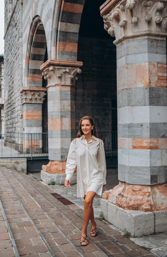 Our garments are exclusively designed and created in Kyiv, Ukraine. By supporting our brand and placing an order, you contribute to providing salaries for women living with their children in a war-affected area. Every purchase makes a difference in their lives.