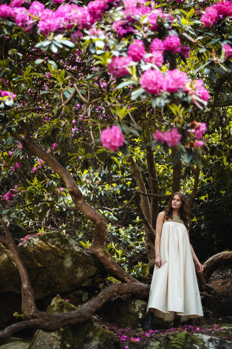 Organic dress with hand knitted bodice