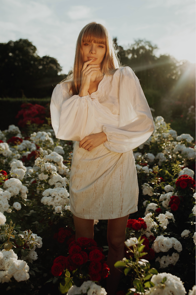 Midi Eucalyptus Dress With Voluminous Sleeves