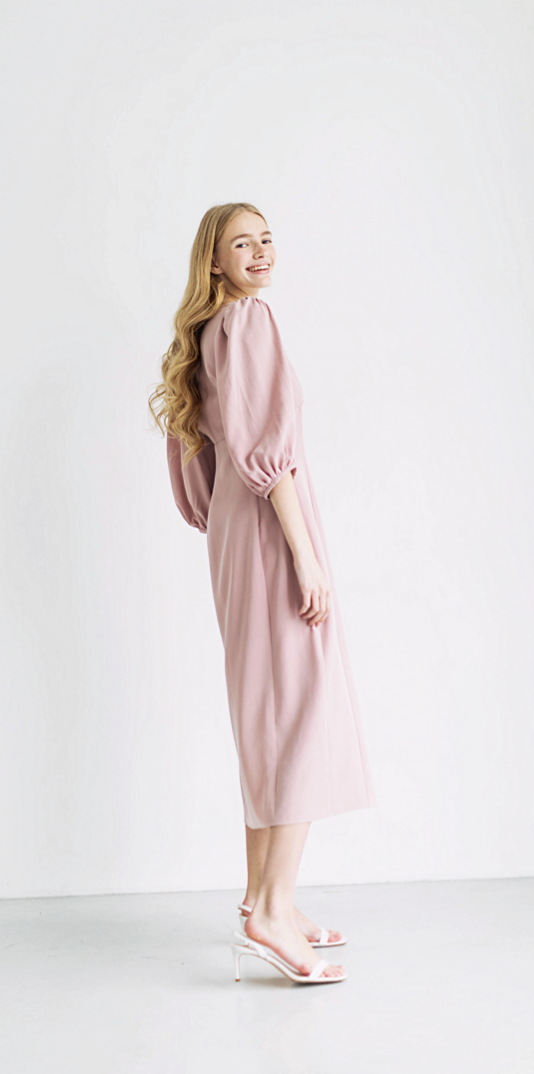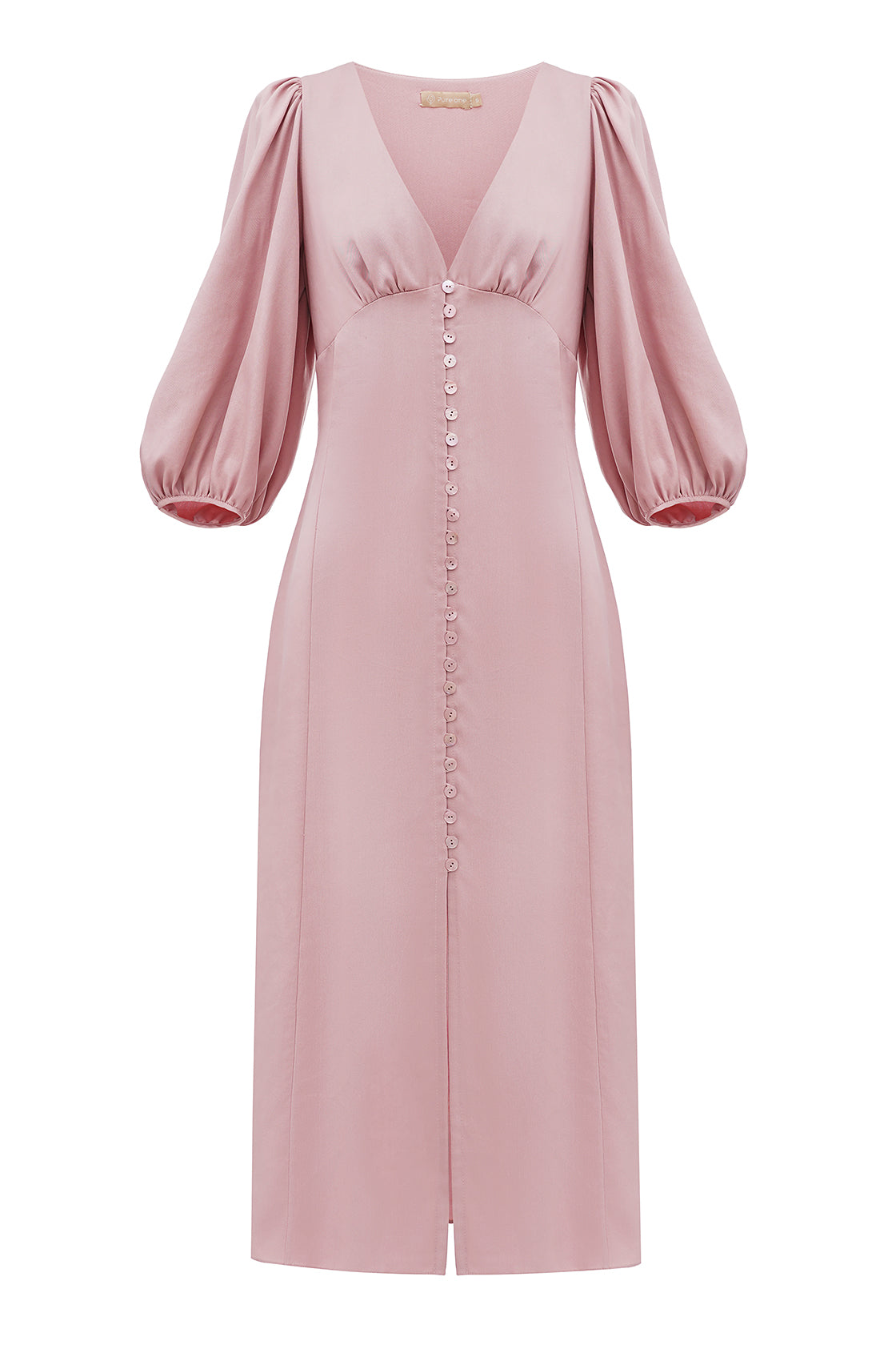 Pudra color romantic dress features puffed sleeves, sleek button fastenings and a nipped-in waist. Composition: 100% TENCEL™ Lyocell sustainably sourced from eucalyptus TENCEL™ Lyocell fibers are known for their natural comfort and unique physical properties that lead to their great strength, efficient moisture absorption and gentleness to skin. TENCEL™ Lyocell fibers are produced by environmentally responsible processes from the sustainably sourced natural raw material wood. They help to maintain the environmental balance by being integrated into nature´s cycle.