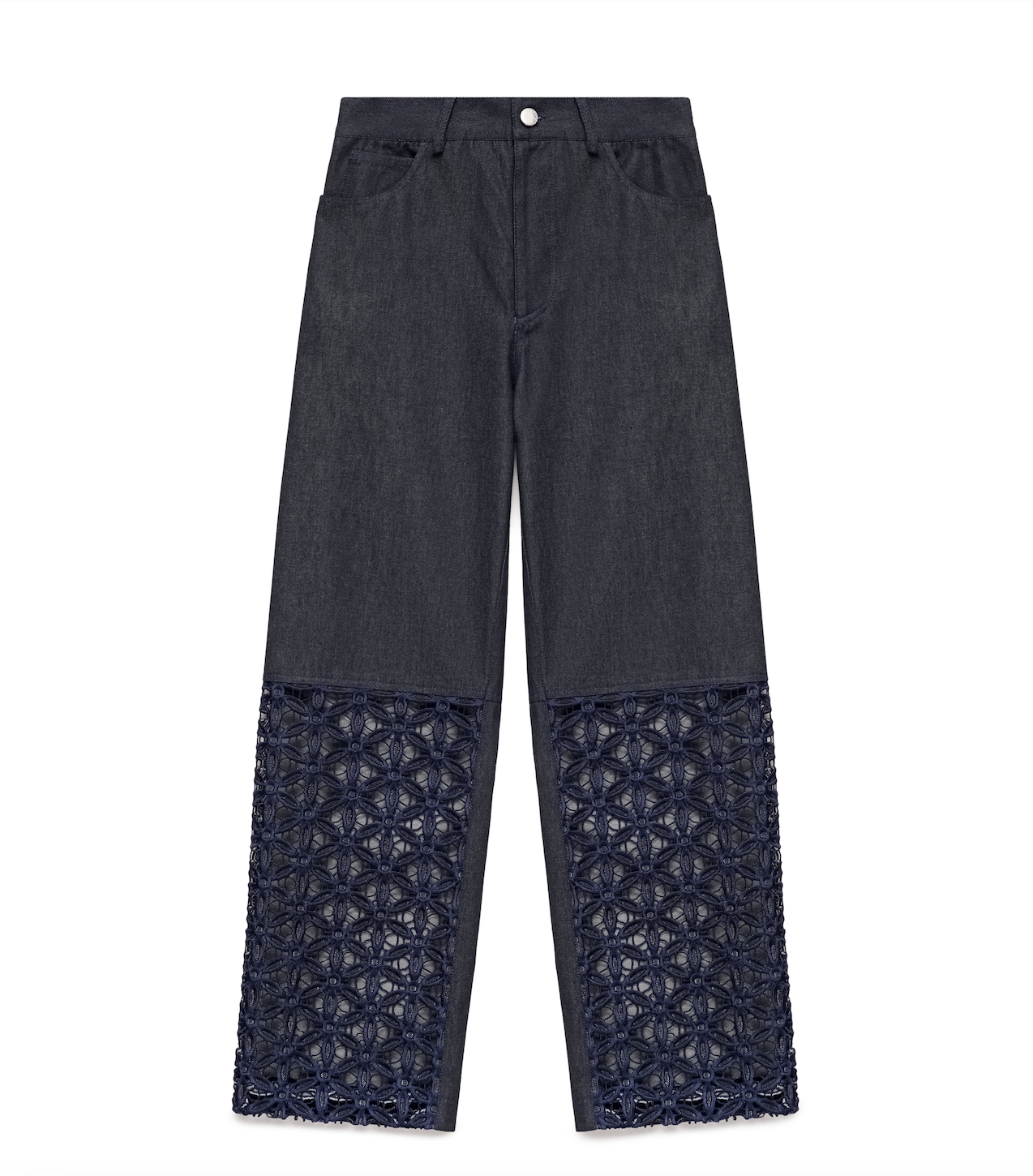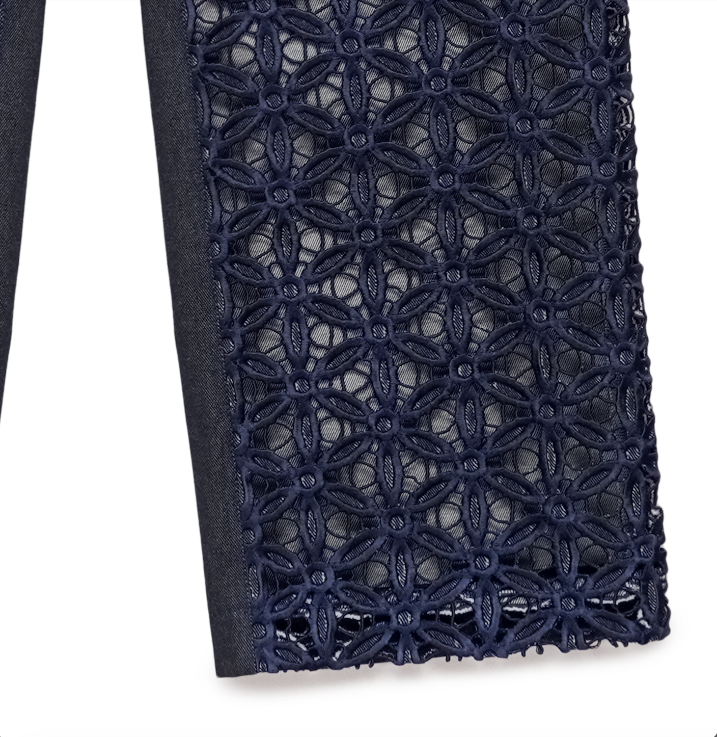 Navy Organic Denim Trousers with Cutwork Embroidery