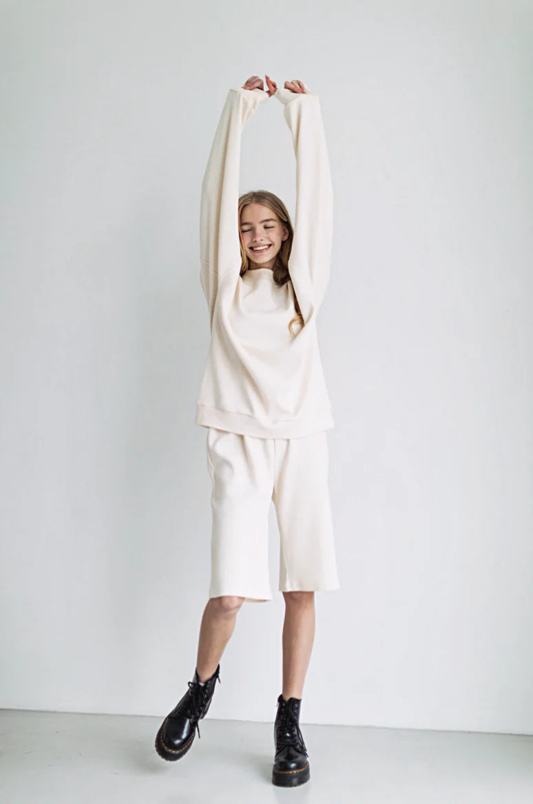 Casual bermudas in sustainable jacquard cotton. Complete the set with our Jacquard Sweatshirt.